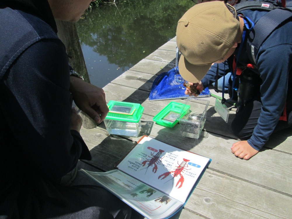 初夏のすがすがしい日がつづきます。太陽も高いところからてらしており、日中は暑いです。外での活動には水とうがいりますね。さて、今回のテーマは「池の生き物」です。